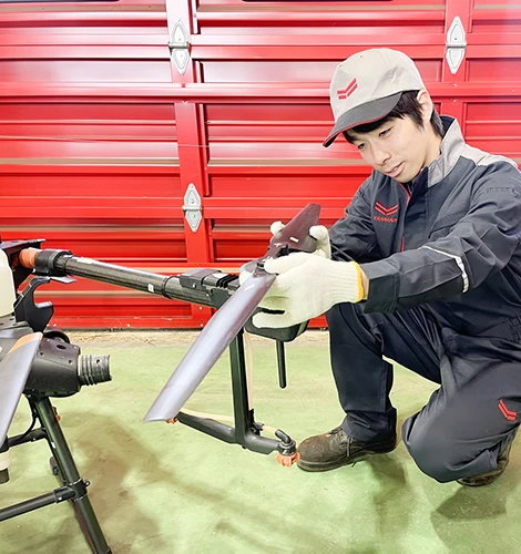 私が在籍している関東アグリサポートセンターでは、販売店様やJA様からの整備依頼が多く、トランスミッション内部の修理やエンジンのオーバーホールなどの重整備を行いお客様のご要望に応えています。また、コンバインや田植機以外にも、ドローンの点検整備を行うことでお客様が安心して機械を使用していただけるよう日々努力しています。